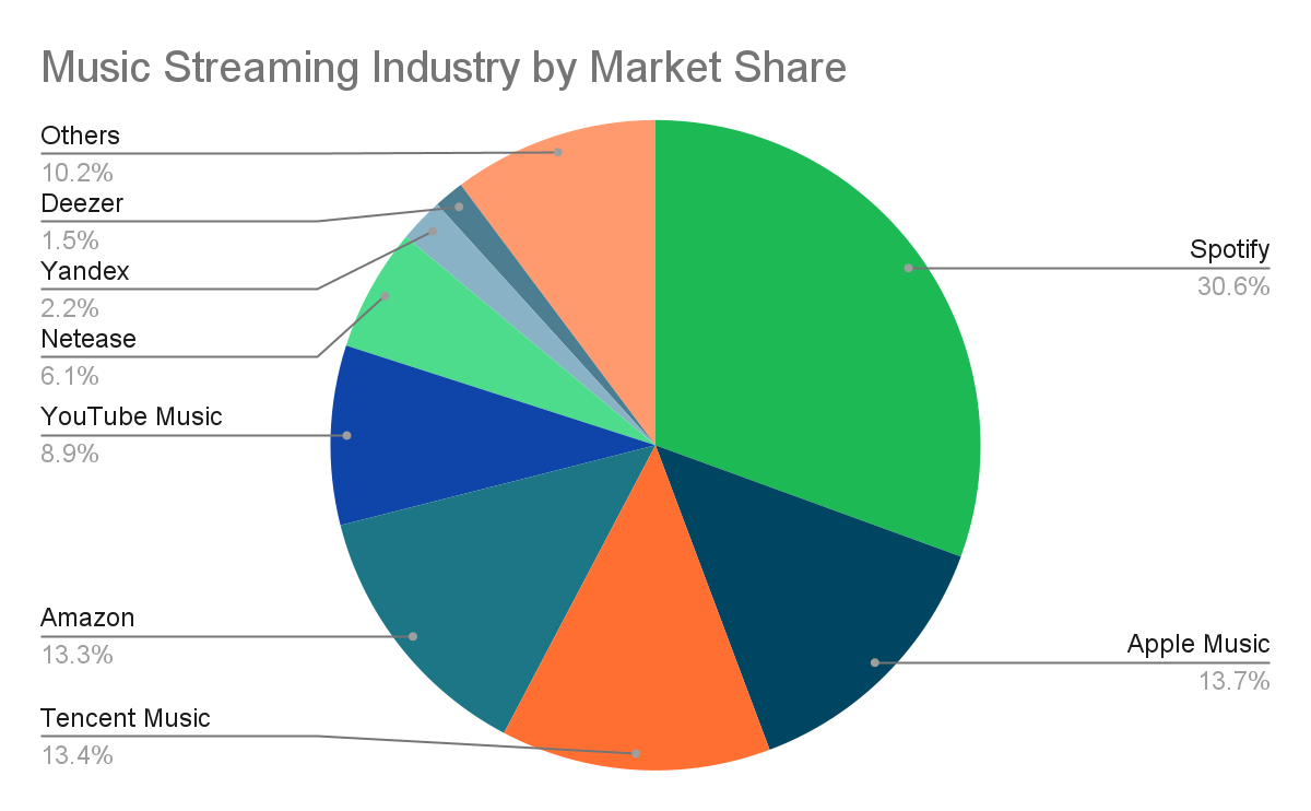 Okay, so streaming can be feasible. Another concern is competition. As Spotify rode the music streaming wave to great success, many competitors have emerged to try and steal its crown. Apple Music, Tencent Music, Amazon, Youtube Music, Netease.